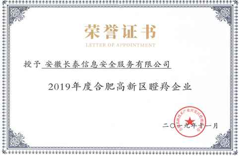 2019年,11月20日,合肥高新区2019年高成长企业榜单正式发布,高新区共认定了502家高成长企业,其中雏鹰企业275家、瞪羚培育企业72家、瞪羚企业149家、潜在独角兽企业3家、独角兽企业1家、平台型龙头企业2家。作为其中的高科技企业——安徽k1体育在线网站-k1(中国)成功入选瞪羚企业榜单。